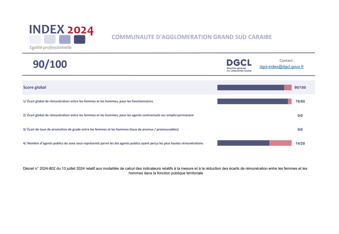 Dans le cadre de son engagement pour l’égalité entre les femmes et les hommes, la Communauté d’Agglomération Grand Sud Caraïbe a obtenu un score de 90/100 à l’index 2024 sur l’égalité professionnelle.